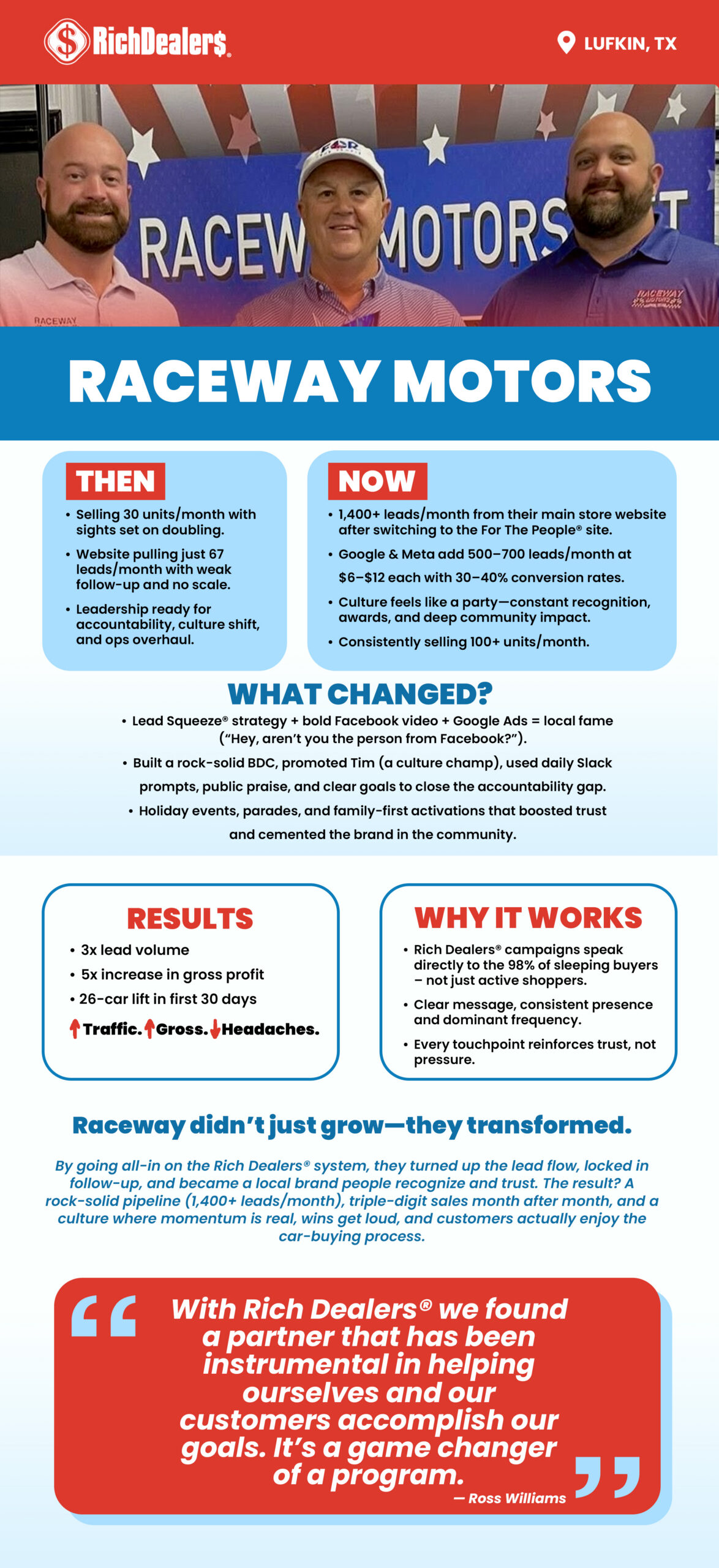 This case study shows how Raceway Motors used the Rich Dealers® system to improve